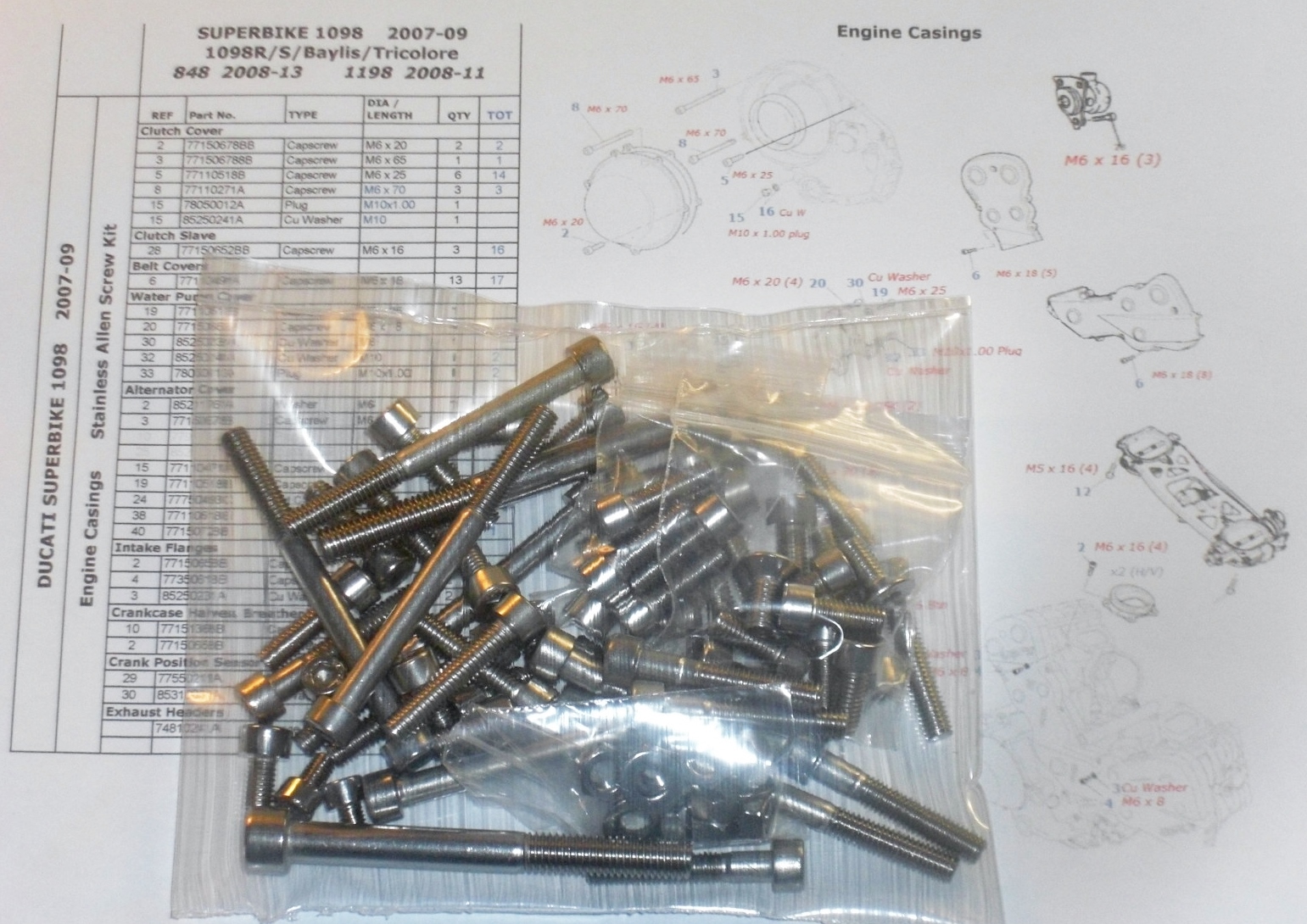 • Ducati Superbike 848 1098 1198 Engine Stainless Allen Bolt kit
