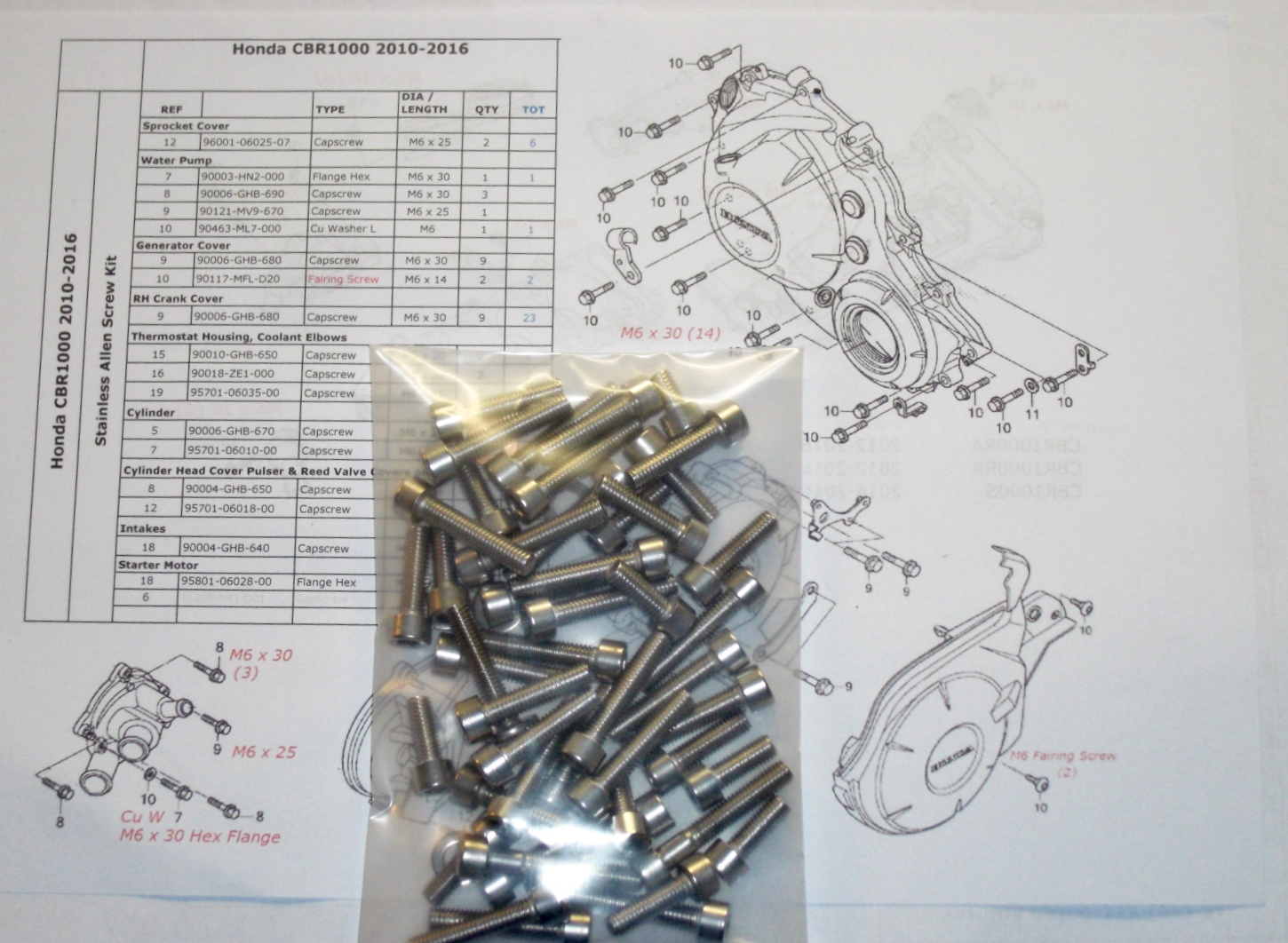 • Honda CBR1000RR Fireblade 2008-16 Engine Covers Stainless Allen Screw Kit