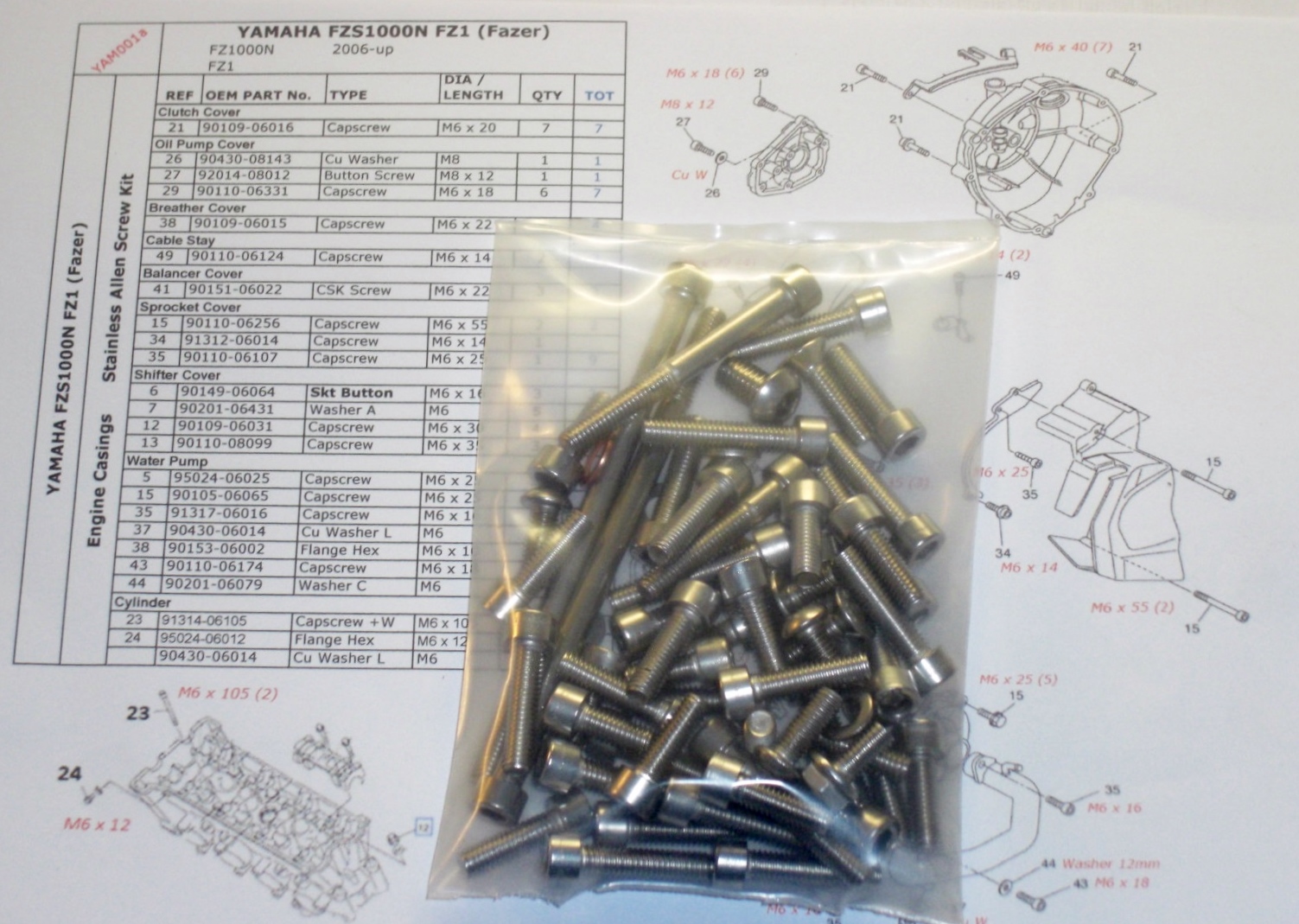 Yamaha Fazer FZS1000N / FZ1 2006-08 Engine Stainless Allen Screws kit
