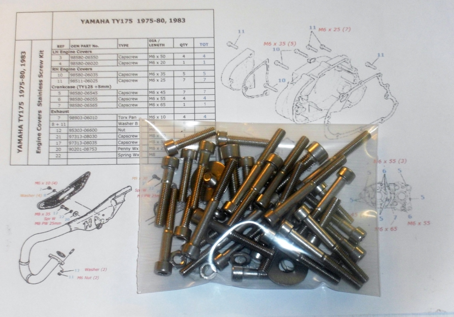 Yamaha TY125 & TY175 1975-80 Engine Covers Stainless Allen Screws kit